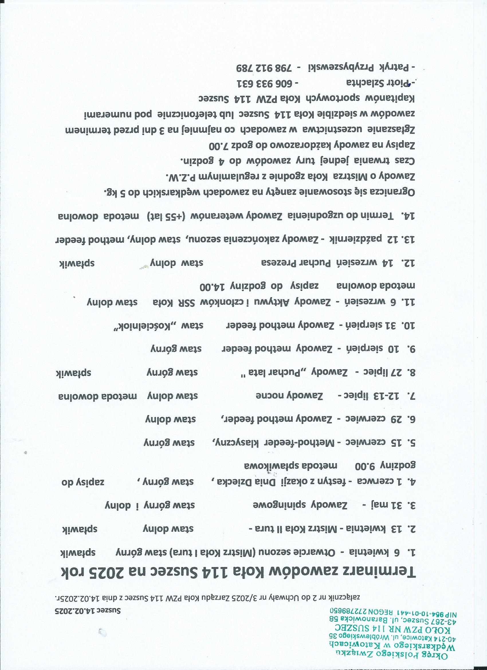 Zawody Spławikowe o Mistrzostwo Koła PZW Żółkiewka dnia 26 kwietnia 2026 r.
